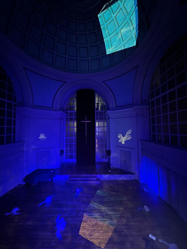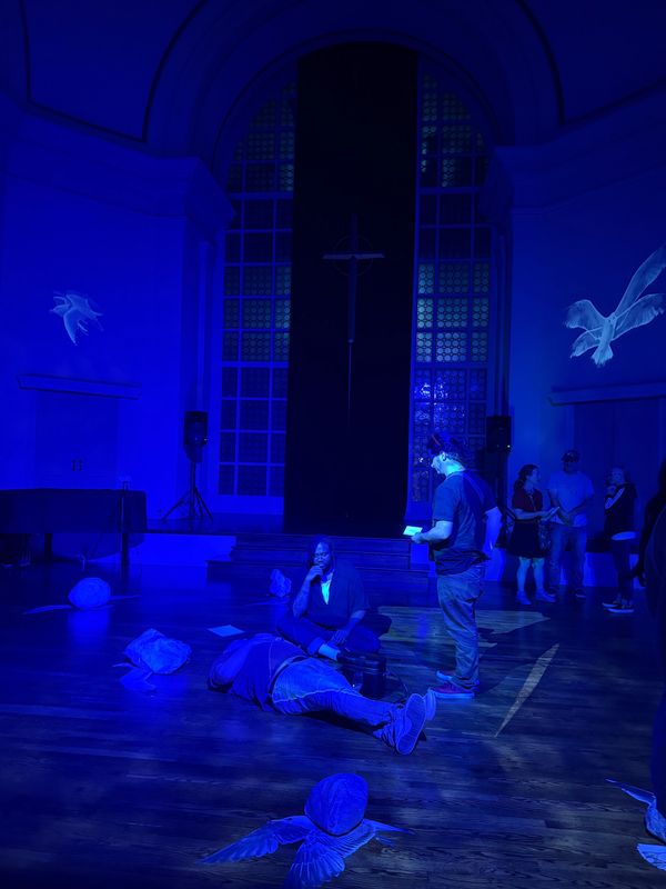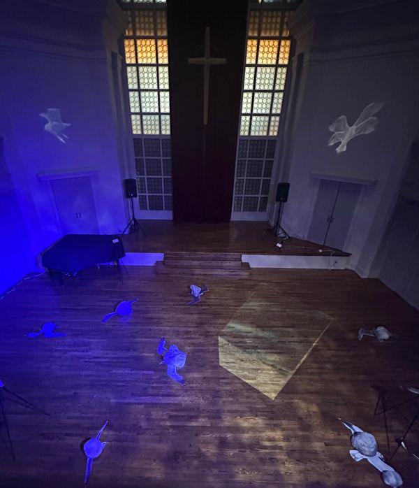 A video, sound, light, and sculptural installation, conceptualized for the coffered domed chapel of Downtown Presbyterian Church in Nashville, TN. Curated by Nashville Pantheon, this installation takes the idiom "two birds with one stone" as the jumping off point for an exploration of desire and how it manifests violence.